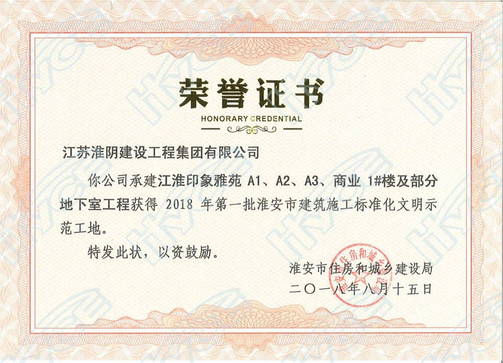 淮安市建筑施工标准化文明示范工地-江淮雅苑A1、A2、A3、商业1#楼及部分地下室工程