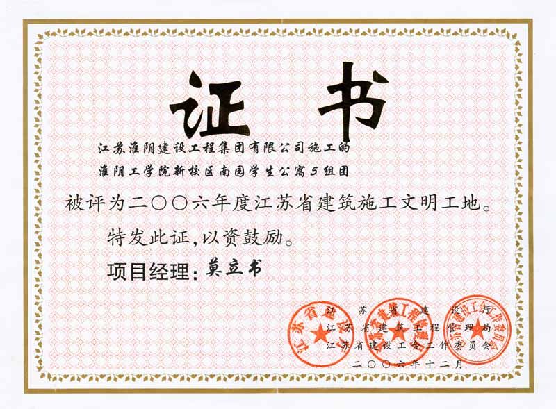 2006年省级建筑施工淮阴工学院新校区南园学生公寓5组团-