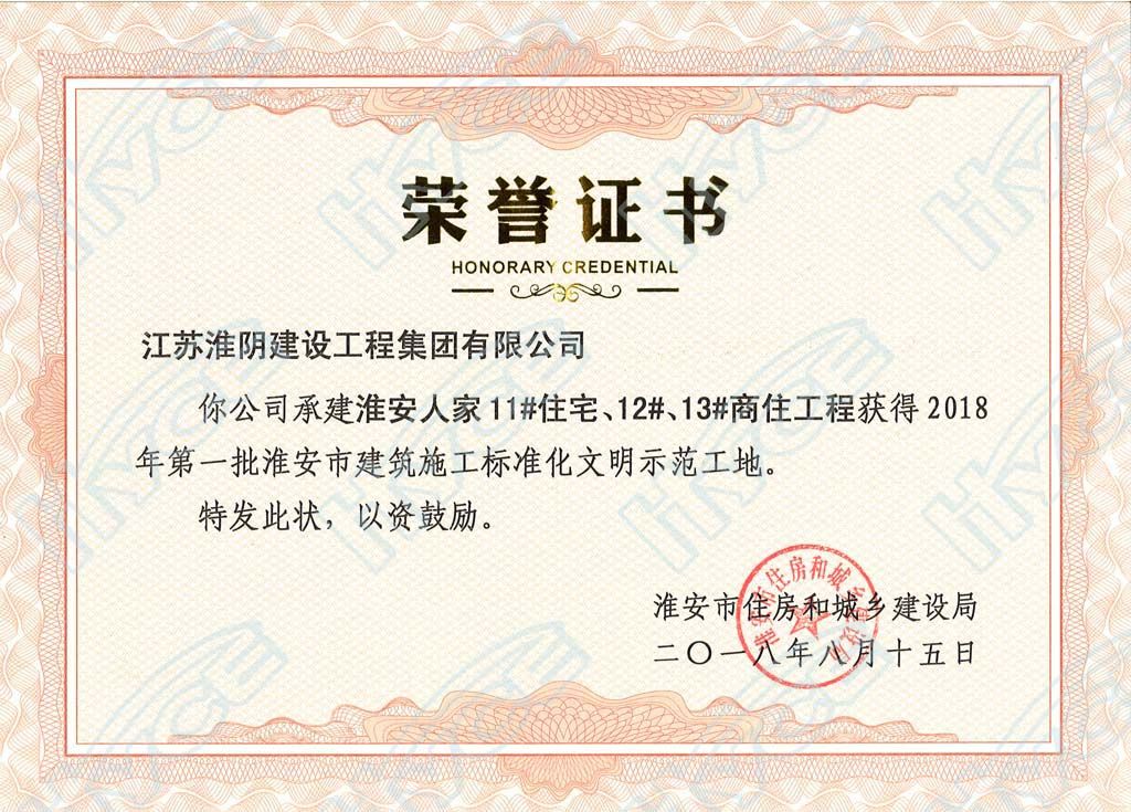 淮安市建筑施工标准化文明示范工地-淮安人家11#住宅、12#、13#商住工程