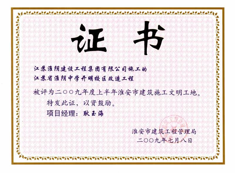 2009年市文明工地江苏淮阴中学开明校区改造-耿玉海